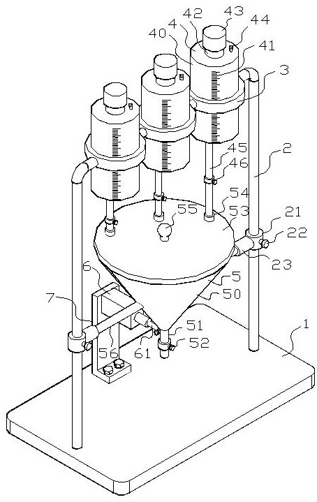 | 摘要: | 本实用新型涉及胃镜染色混合领域,尤其涉及一种胃镜染色剂混合溶液配制设备,该配制瓶可解决目前内镜染色溶液的配置,是工作人员手动添加,再手动摇匀,不能实现药液的连续定量供给和搅匀,费时费力,不利于提高工作效率的问题。包括底座,所述底座上方设有锥形的混合容器,所述混合容器左右两侧分别与竖向的支杆可转动连接,所述混合容器上方设有若干与混合容器可拆卸连接的其可以控制排液量的储液桶,每个储液桶上分别套设有固定环,相邻的固定环之间设有连接块,最外侧的固定环通过连接块与支杆顶部固定连接;混合容器底部后侧还设有前后往复推拉的摇匀结构。它操作简单,使用方便,适用于多种溶液。 | ||||