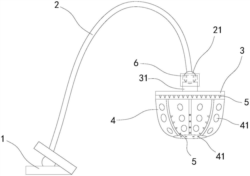 | 摘要: | 本实用新型涉及医疗器械技术领域,公开了一种医用床头存放柠檬支架,包括基座、支杆、连接盖和储物盘,所述基座与所述支杆的一端连接,所述支杆的另一端与所述连接盖的上侧连接,所述支杆可活动调位,所述连接盖可装拆地盖合连接所述储物盘,所述连接盖的下侧和/或所述储物盘的内侧面上设置有尖锐凸起,且所述储物盘设置有镂空区。这种医用床头存放柠檬支架能够在储物盘中稳固地放入柠檬,并安全、卫生地进行刺扎、割开,同时配合基座和支杆能够灵活地进行调位的便捷使用。 | ||||