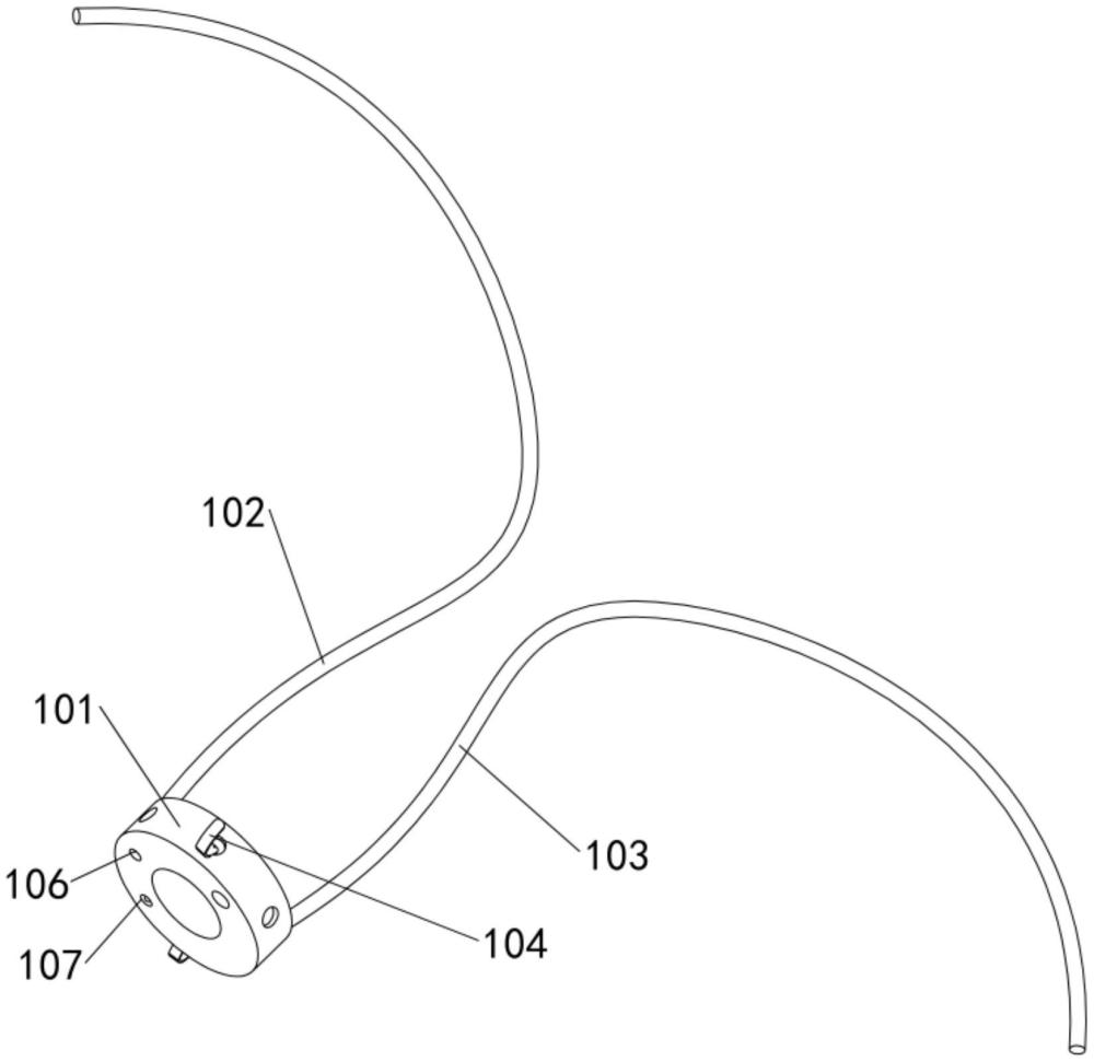 | 摘要: | 本实用新型涉及医疗辅助器件技术领域,尤其涉及一种鼻饲管固定环,所述鼻饲管固定环包括环体,所述环体的两侧对称设置有第一固定绳与第二固定绳,所述环体的外环面按照预设间隔一体连接有若干个固定夹;所述固定夹上安装有温敏传感器与压力传感器,所述环体沿轴向的侧壁上开设有通孔,所述通孔与顶部有微型摄像头的数据线配套使用;所述环体上还安装有指示灯与警报铃,通过固定环可以确保鼻饲管在正确的位置,防止其意外脱落或移动,挺高鼻饲管在使用过程中的稳固性,从而保障患者接受到稳定的饮食或药物输送;并且它还有助于减轻患者的不适感,提高饲管的舒适性。 | ||||