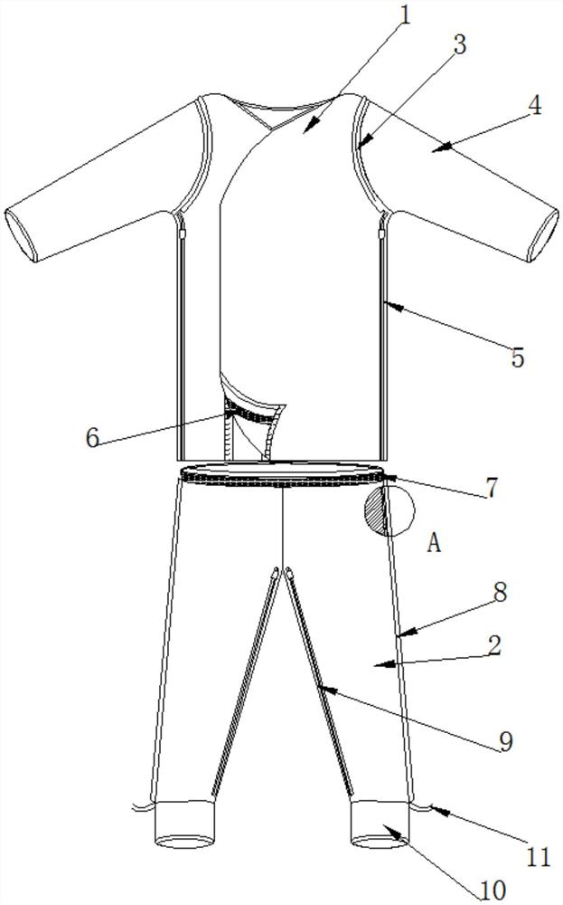 | 摘要: | 本实用新型公开了一种新型放疗服,包括上衣和裤子,所述上衣为蝴蝶衣结构,且上衣的衣物叠合连接处设有一组上衣固定魔术贴,所述上衣的下边缘内壁和裤子的顶端外边之间设有一组腰部魔术贴,所述上衣的两侧肩部至腋下均设有一组肩部魔术贴,所述上衣的两侧腋下部往腰部方向至下摆之间均设有胸侧非金属拉链。本实用新型在上衣两侧肩部及腋下至足部方向共增加四条非金属拉链或魔术贴,裤字两侧髂部至足部及大腿内侧至足部共增加四条非金属拉链或魔术贴,使得患者进行放疗定位和放疗时,可以根据治疗要求充分暴露照射区,同时最大程度减少非照射部位暴露面积。 | ||||