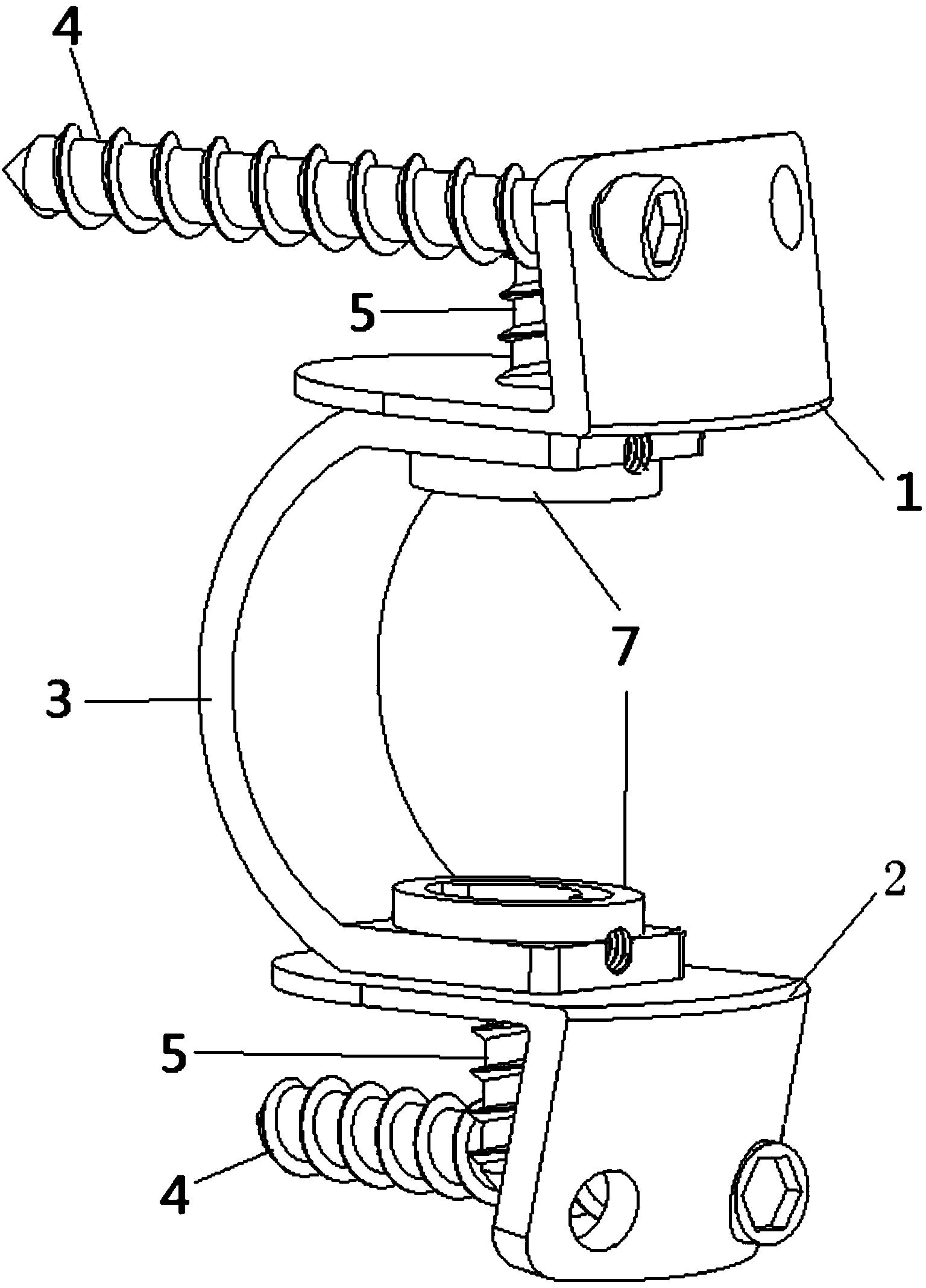 | 摘要: | 本实用新型公开了一种动态人工椎体,包括上托板和下托板,上托板和下托板的结构均为横板和竖板构成的L形,上托板和下托板方向相反,其中横板为平面结构,横板与脊椎的横截面配合,竖板为曲面结构,竖板与脊椎的侧面配合,还包括弹性支架,所述弹性支架为C字形片状结构,弹性支架固定连接于上托板与下托板之间。所述的动态人工椎体在一定范围内能满足轴向变形,保留了脊柱的弹性稳定性及活动性,实现了弹性固定,同时可以有效改善对邻近节段负荷增加、退变加速等并发症的影响。 | ||||