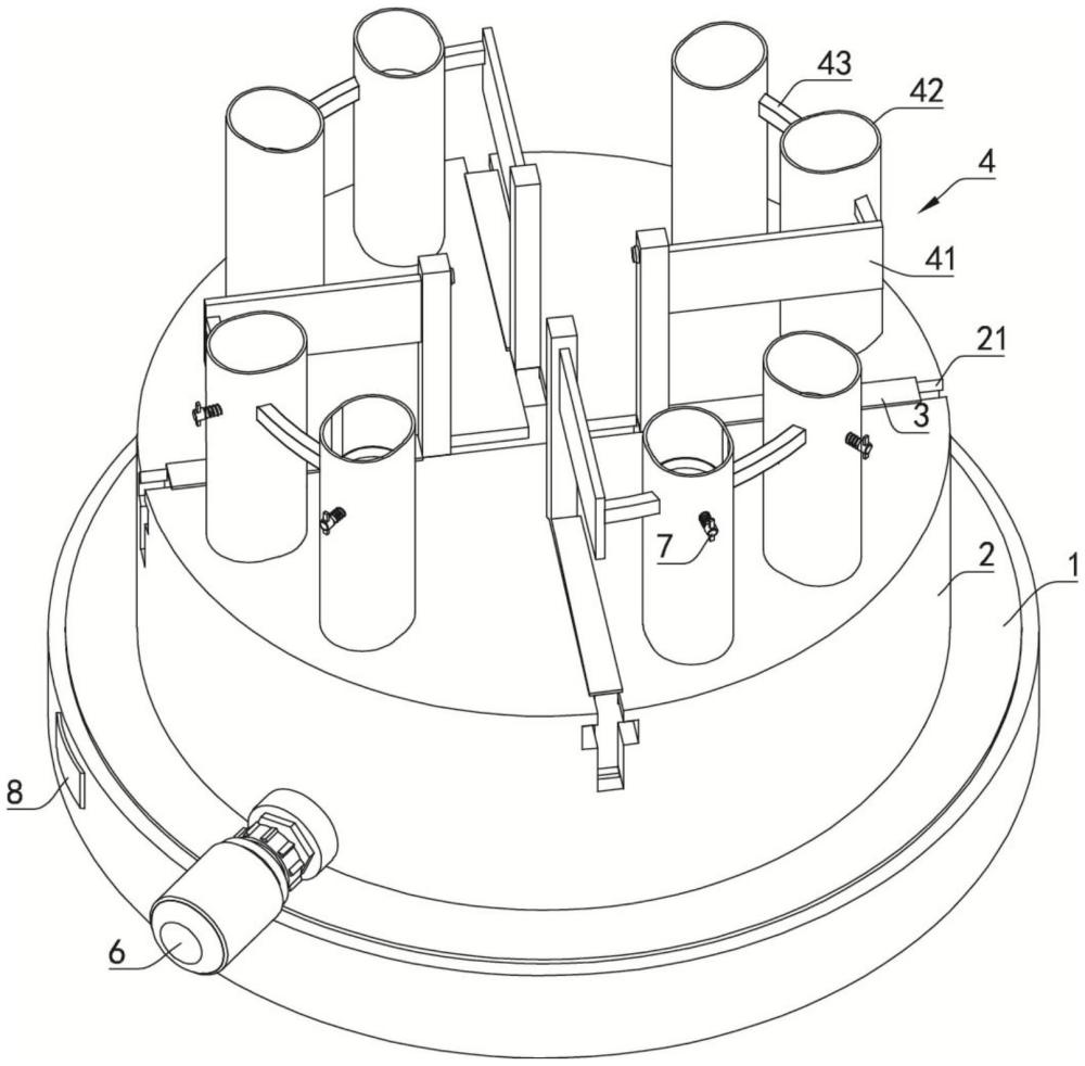 | 摘要: | 本实用新型公开了一种临床检验用多工位离心机,包括离心机底座以及设于所述离心机底座上的旋转座,所述离心机底座中设置有驱动电机,所述驱动电机的输出端与所述旋转座的底部传动连接,所述旋转座的顶部均滑动装配有若干滑块,若干所述滑块的滑动轨迹均指向所述旋转座的旋转中心,所述滑块上设置有用于放置离心试管的试管座,所述旋转座内设置有调节组件,所述调节组件用于调节各个所述滑块与所述旋转座旋转中心之间的间距。本实用新型通过调节组件驱使所述滑块在所述滑槽中滑动以此调节所述滑块至所述旋转座的中心之间的距离由此改变离心半径,从而改变了试管座中离心试管所受到的离心力大小。 | ||||