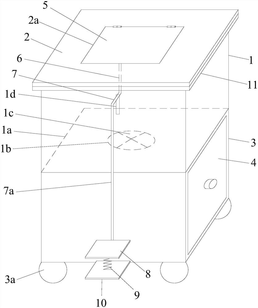| 摘要: | 本实用新型公开了一种改良式大容积锐器盒,包括盒体和盒盖,所述盒体的底部向下延伸形成扩容盒,盒体和扩容盒均为40cm×40cm×40cm的方形盒体,扩容盒的侧面敞口并且内置有左右抽拉的抽屉,盒体的底板开有与扩容盒内的抽屉连通的开孔,盒盖上开有方形开口,方形开口的后侧铰接连接有活动盖,活动盖的下侧铰接连接有竖向连杆,竖向连杆的下端固定连接有横向连杆,横向连杆贯穿盒体的前侧面并且固定连接有下竖杆,下竖杆的下端固定有脚踏板,脚踏板的下侧固定有弹簧,弹簧的下端固定在一固定板上,固定板固定在扩容盒的前侧底部。本实用新型的改良式大容积锐器盒能储放更多的锐器和输液器,且符合医院感染控制要求。 | ||||
