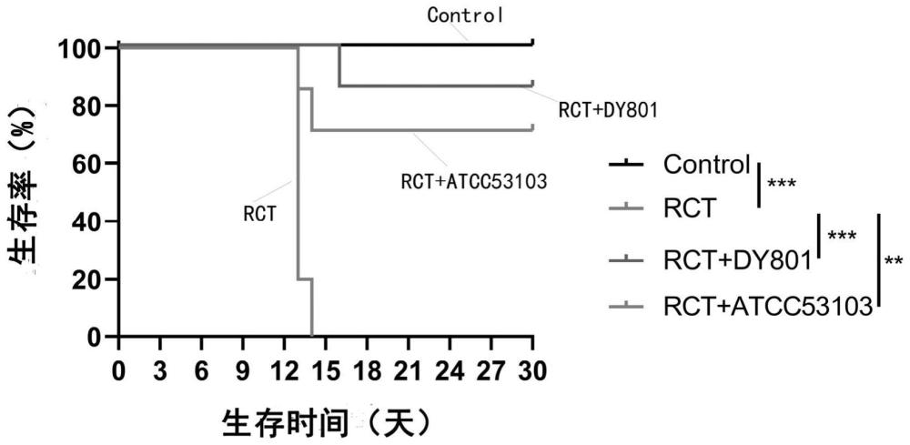 | 摘要: | 本发明提供一株鼠李糖乳酪杆菌DY801及其应用。该鼠李糖乳酪杆菌DY801,于2022年10月9日保藏于广东省微生物菌种保藏中心,保藏编号为GDMCC 62853。本发明提供的鼠李糖乳酪杆菌DY801能够通过产生大量谷胱甘肽,以改善肠道的氧化应激和小肠绒毛在放化疗条件下的损伤,降低炎症指标,同时能耐受人工胃液和肠液,并且对人体无明显毒副作用,安全性高。本发明提供的鼠李糖乳酪杆菌DY801或其培养物可应用于预防和/或放化疗性肠损伤的药物的制备中,能够用于预防和/或治疗放化疗性肠损伤引起的消化系统疾病,解决了现有技术中存在的无法有效治疗盆腔恶性肿瘤放化疗后出现的放化疗性肠损伤的问题。 | ||||