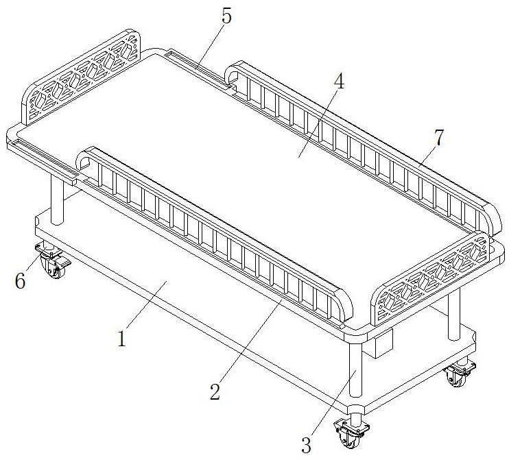 | 摘要: | 本实用新型公开了一种病床,包括底板,所述底板的上方设置有承托板,所述底板顶部的中心处安装有能自动调节承托板高度的调节组件,底板顶部的四角均安装有支撑于承托板下方的引导组件,承托板顶部的左侧固定镶嵌有称重传感器,承托板的左侧设置有控制器,控制器的左侧螺丝安装有蜂鸣器,称重传感器与控制器双向电连接,蜂鸣器的输入端与控制器的输出端电性连接,承托板的顶部开设有放置槽,放置槽的内腔设置有床板。本实用新型可智能调整承载高度,以满足使用者需求。 | ||||