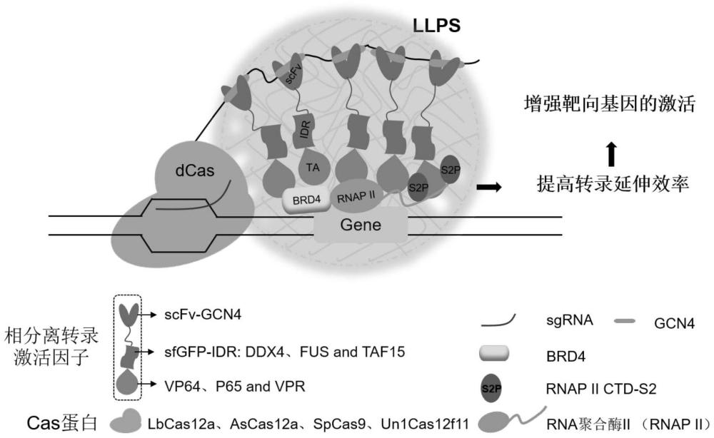 | 摘要: | DropCRISPRa高效靶向相分离基因激活系统及其构建方法和应用,属于基因工程技术领域。本发明DropCRISPRa高效靶向相分离基因激活系统包括CRISPR/Cas‑GCN4融合蛋白系统、相分离转录激活因子和向导RNA。Cas包括dLbCas12a、dAsCas12a、dspCas9和dUn1Cas12f1;IDRs包括DDX4、FUS和TAF15;转录激活因子包括VP64、P65和VPR。本发明系统实现在哺乳动物细胞内和动物体内靶向基因激活;提高靶向基因的RNA转录效率;广泛的覆盖各种基因的位点;解决了体内体外使用中体系太大的困难;基因激活选择性高。 | ||||