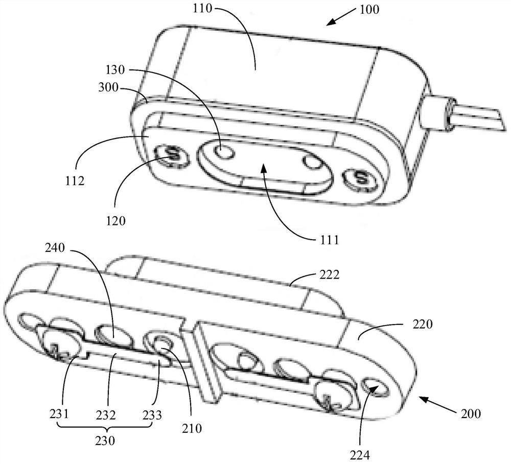 | 摘要: | 本发明公开一种电连接组件和除颤仪系统,其中,电连接组件包括第一电连接器和第二电连接器;第一电连接器包括第一壳体,第一磁吸件和第一触头设于第一壳体;第二电连接器包括可与第一壳体对接的第二壳体、第二触头及导电弹片;第二触头与第一触头相对设置并固定设于第二壳体;导电弹片包括固定部、连接部及自由部,固定部固定连接于第二壳体;连接部的两端分别连接固定部和自由部,连接部对应第一磁吸件设置;自由部位于第二触头背离第一触头的一侧并与第二触头间隔设置;导电弹片被第一磁吸件吸引时,自由部与第二触头接触。本发明技术方案在第一电连接器与第二电连接器未连接时,可避免用户误触电连接器而导致触电的情况。 | ||||