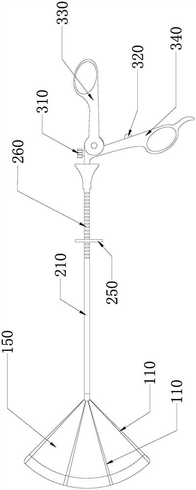 | 摘要: | 本申请提出一种用于腹腔镜手术的扇托装置,用于腹腔镜手术的扇托装置包括操纵单元、连接单元和悬吊单元,连接单元包括连接杆,连接杆安装在操纵单元上,悬吊单元包括柔性扇骨和牵拉线,多个柔性扇骨铰接安装在连接杆上,柔性扇骨传动连接操纵单元,操纵单元能够驱动各个柔性扇骨张开或合拢,牵拉线的一端连接柔性扇骨,牵拉线的另一端连接操纵单元,牵拉线能够驱动柔性扇骨弯曲。先将柔性扇骨合拢放入体内,再张开柔性扇骨,牵拉线使柔性扇骨弯曲,从而使柔性扇骨托住肝脏的下缘,进而牵拉肝脏,实现肝脏的悬吊,使用可弯曲的柔性扇骨能够更好地承托和牵拉肝脏,用于腹腔镜手术的扇托装置能够提高肝脏悬吊质量。 | ||||