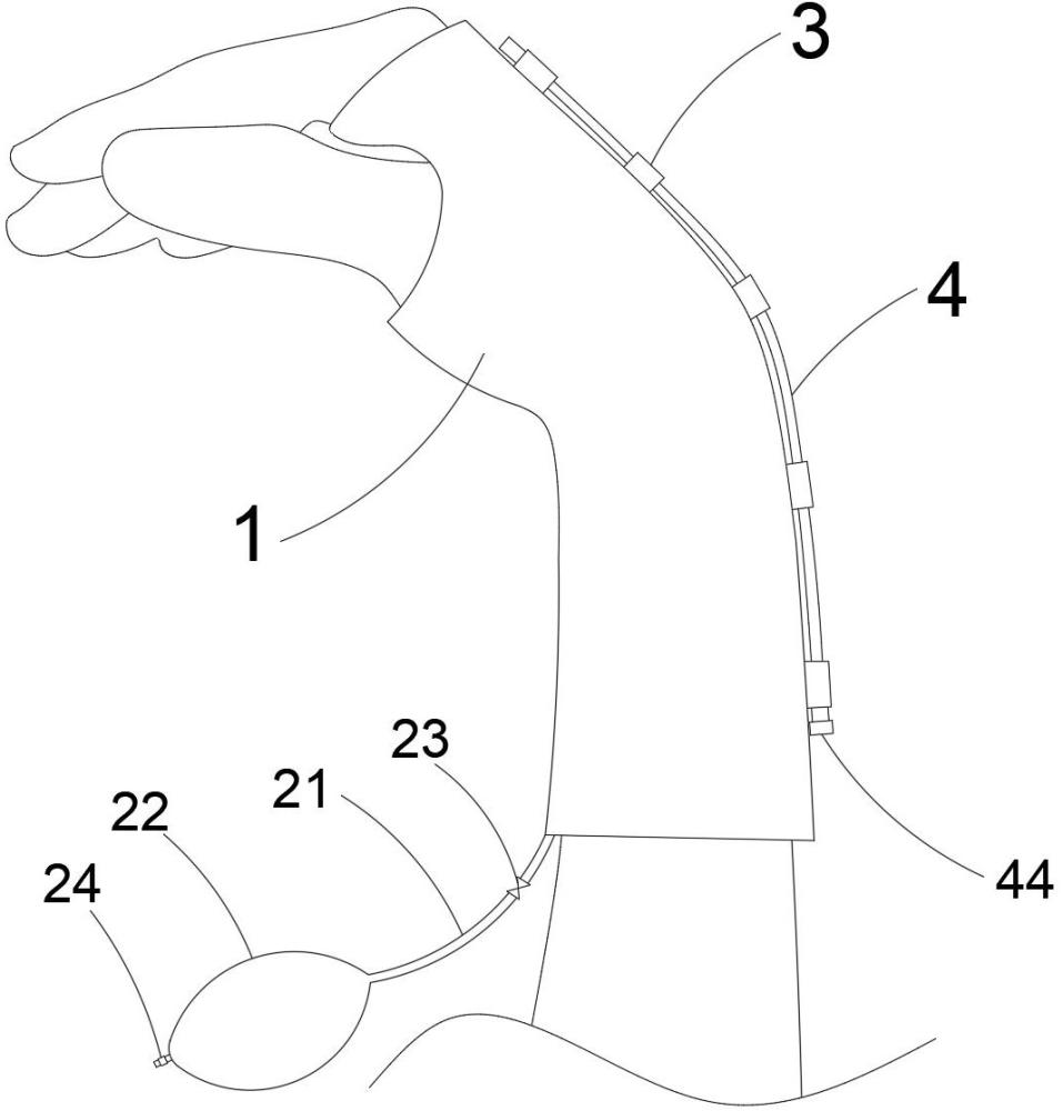 | 摘要: | 本发明公开了康复用手腕稳定器,包括穿戴套,所述穿戴套从手掌前部向后套至手腕后方;所述穿戴套前端对应五根手指开设有指洞;所述穿戴套前端套至手指根部使手指大部分外露;所述穿戴套对应手背的一侧沿手掌背、手腕至手腕后方分别设置有多个导引块;一姿态固定链依次穿过各导引块;所述姿态固定链外套设有弹性外套;所述姿态固定链包括多个依次首尾相对的链块单体以及同时从各链块单体中心沿轴向滑动穿过的拉线;通过其简单轻便的结构设计,成功实现了手腕姿态的灵活调节与稳定固定,确保用户在康复和日常使用过程中都能获得最佳的支撑和保护效果。 | ||||