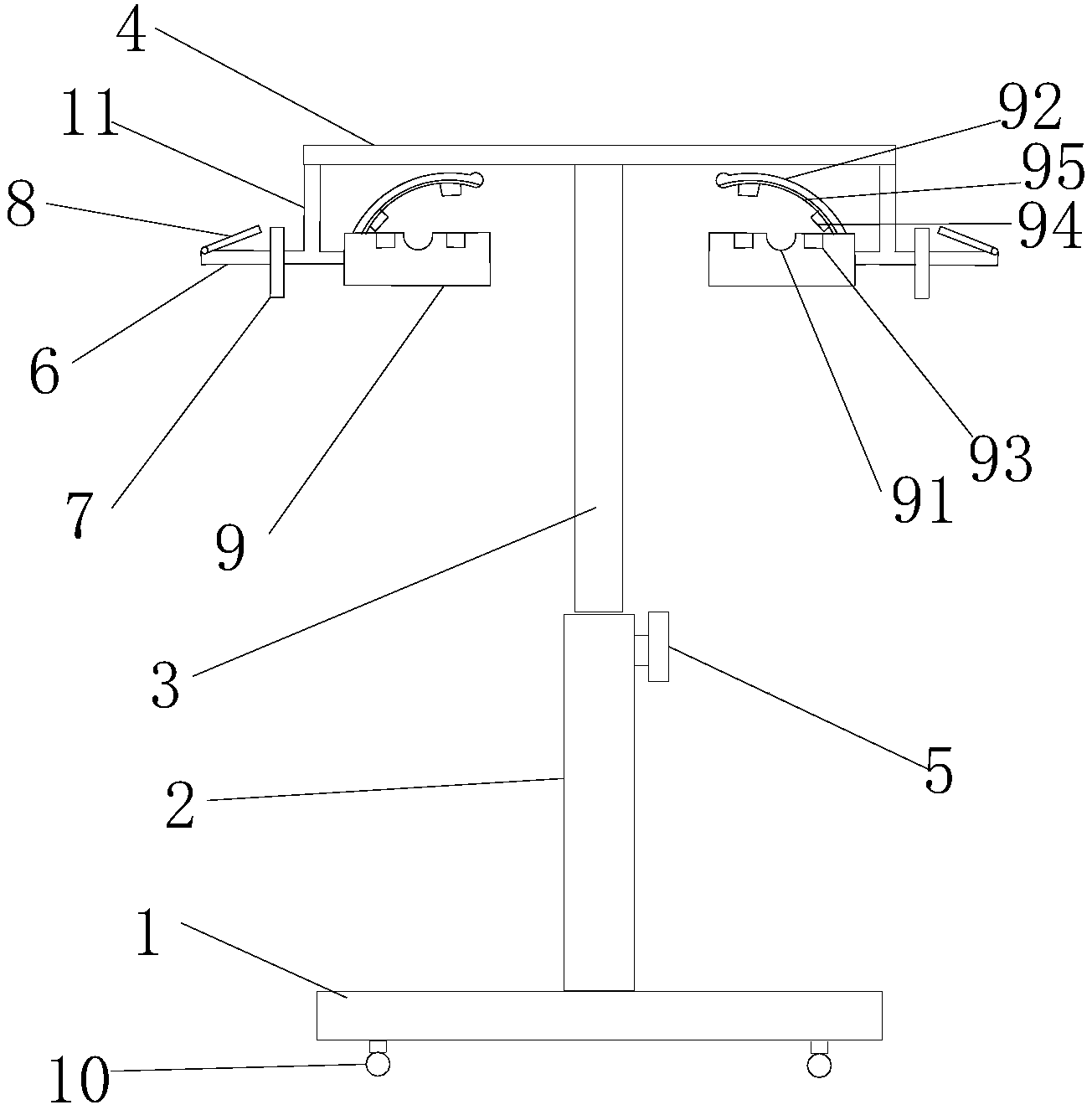| 摘要: | 本实用新型公开了一种输液固定架,包括底座、设置于所述底座上的支撑杆以及设置于所述支撑杆顶端的横梁,所述横梁两侧对称设有两条横向延伸的输液挂轴,所述输液挂轴通过摆动杆与横梁连接,所述输液挂轴上设有与其相垂直的挡板,且输液挂轴上在远离所述横梁的一端设有可穿过输液袋上通孔并与所述挡板共同夹紧输液袋的弹性片,所述弹性片与所述横梁铰接,所述弹性片的自由端为横向延伸并朝远离铰接点的方向弯曲;所述输液挂轴在弹性片的反方向一端设有输液管放置架。本实用新型使用时将输液袋穿过弹性片到挡板位置后,转动弹性片使输液袋置于挡板与弹性片之间,输液袋在使用过程中不会晃动,并设置有输液管放置架,可将输液管收纳放置,防止脱落。 | ||||
