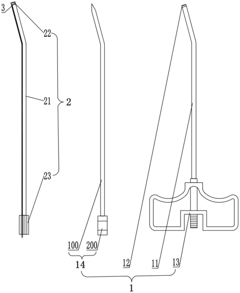 | 摘要: | 本实用新型公开了一种用于椎管前方椎体组织的带角度活检穿刺套装,包括穿刺锥管;所述穿刺锥管的穿刺端呈弯曲状,在所述穿刺锥管上可拆卸设有取样锥体且该取样锥体的前端呈弯曲状;在所述取样锥体上设有一在所述取样锥体获取椎体病变组织后能够伸展开形成一个伞形结构体将椎体病变组织封堵在该取样锥体内以避免取样时造成椎体病变组织脱落的封堵限定结构。本实用新型具有能够实现对椎体病变组织的穿刺取活检、并且在椎体病变组织局限于椎管前方的椎体组织时也能够提高穿刺取活检的成功率以减少患者痛苦以及不易造成神经损伤、能够有效获取椎管前方的目标椎体组织以降低假阴性的误诊问题、不易造成椎体病变组织取样脱落的优点。 | ||||