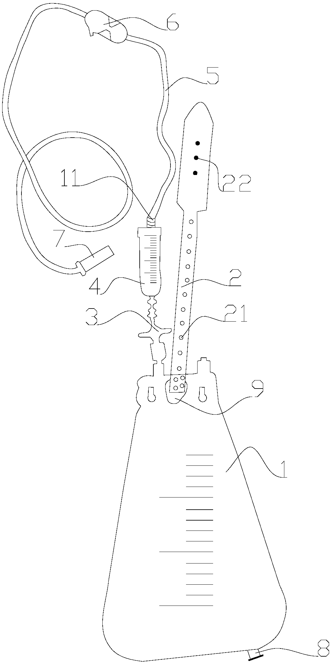 | 摘要: | 本实用新型公开了一种体外引流袋,它包括顺序串联的旋转接口、引流管、滴壶、三通连接器以及表面设有容积刻度线的引流袋,其中,它还包括用于悬挂引流袋的悬挂带,所述悬挂带沿其长度方向上设有刻度尺标线,所述引流袋密封口部设置有供所述悬挂带穿过的通孔,所述悬挂带穿过该通孔首尾连接形成可悬挂的环状;所述三通连接器的两接口分别与所述引流袋和所述滴壶连通,所述引流袋下方还设有用于倾倒袋内引流液的带有端盖的放液口。采用以上结构本实用新型的引流袋具有高度可调,固定牢靠,结构简单实用,且操作方便的优点。 | ||||