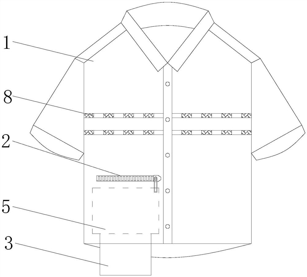 | 摘要: | 本实用新型公开了一种PTCD管专用衣,包括衣体,所述衣体正表面右侧的底部针织连接有拉链,所述拉链的下方且位于衣体的内侧有收纳区域,所述收纳区域处有与PTCD管配合的卡扣,所述收纳区域的下方且位于衣体的内侧设置有口袋,所述衣体正表面的顶部环向固定连接有两个反光条。本实用新型通过设置衣体、拉链、口袋和卡扣的配合使用,方便医护人员换药和查看护理,以及方便对PTCD管进行收纳,这样PTCD管专用衣的使用效果更好,解决了现有的PTCD管专用衣在使用过程中,因不能对PTCD管进行收纳,造成PTCD管暴露在衣服外部,从而导致PTCD管专用衣出现使用不美观的问题。 | ||||