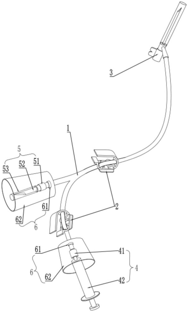 | 摘要: | 本实用新型公开了一种动静脉两用采血针,包括Y形管,在所述Y形管的入口端以及其中一个出口端上均设有止流夹,还在所述Y形管的入口端设有一与患者的股动脉连接用于进行血液和动脉血气采集的穿刺针;在所述Y形管上位于带有所述止流夹的其中一个出口端设有动脉血气采集结构,在所述Y形管的另一个出口端设有血液采集结构;还在所述Y形管的两个出口端上均设有一能够笼罩住相应的所述动脉血气采集结构或者血液采集结构用于在拨针时防止血液喷射造成医护人员被污染的套管结构。本实用新型具有能够实现血液以及动脉血气的同步采集以减少患者穿刺次数以及疼痛和心理恐惧、有效减少医护人员工作量、不易造成医护人员被采集血液污染的优点。 | ||||