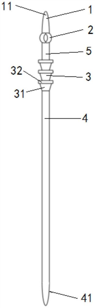 | 摘要: | 本申请公开了一种简易型自锁式肝门血流阻断带,涉及医疗器械技术领域。不仅阻断效果好、无副损伤,而且阻断效果可调控、使用方便、操作简单。该简易型自锁式肝门血流阻断带,包括阻断带头部、弹性卡环、弹性卡扣和阻断带尾部;阻断带头部和阻断带尾部均为杆状;弹性卡扣的第一端连接阻断带头部,弹性卡扣的第二端通过连接段连接弹性卡扣;弹性卡扣与弹性卡环相适配;阻断带尾部穿过弹性卡环后,弹性卡扣卡紧在弹性卡环内。本申请用于提高肝门血流阻断带的性能。 | ||||
