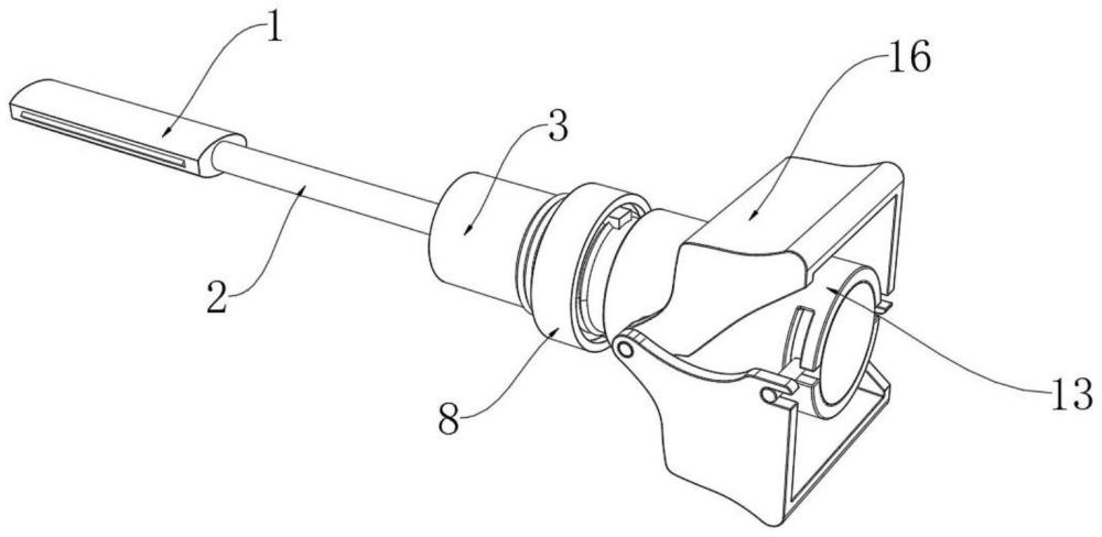 | 摘要: | 本实用新型涉及五官科设备技术领域,尤其涉及一种修刮设备。包括修刮件,修刮件的一端安装有驱动件,修刮件包括修剪刀和连接柱,修剪刀的一端固定有连接柱;驱动件包括旋转柱和固定套,连接柱的一端螺纹连接有旋转柱,旋转柱远离修剪刀一端的外侧滑动连接固定套;旋转柱内部靠近修剪刀的一端滑动连接有照明灯,照明灯远离修剪刀一端的顶部和底部均固定有定位板,定位板与旋转柱滑动连接。本实用新型提供的一种修刮设备,通过驱动件和修刮件的配合,能够对耳毛进行修剪,同时能够将修刮件当做一次性物品进行使用,进而能够提高卫生以及防止交叉感染,同时通过手动操作驱动件对耳毛修剪更加干净,并通过照明灯的照明能够让使用者看的更加清楚。 | ||||
