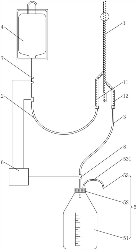 | 摘要: | 本实用新型公开了一种持续膀胱冲洗装置,包括留置人体的三腔导尿管,所述三腔导尿管的三条腔道分别是冲洗腔道、引流腔道、充气腔道,还包括冲洗管、引流管、装有冲洗液的储液袋、引流瓶、控制器,其中,所述冲洗腔道通过冲洗管与储液袋连通,所述引流腔道通过引流管与引流瓶连通,以及,所述冲洗管上安装有流量调节阀且冲洗管、引流管上均安装有流量传感器,所述流量调节阀、各流量传感器均与控制器连接。本实用新型具有提高冲洗效果、减少感染等优点。 | ||||