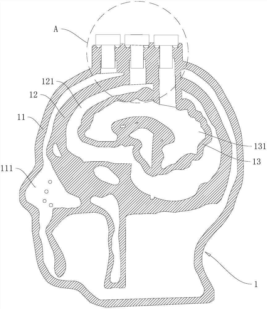 | 摘要: | 本申请涉及一种用于磁共振扫描的头部模型,属于磁共振技术领域。其包括一体成型的外皮模型、头骨模型和脑模型,脑模型内成型有第一溶液腔,脑模型位于头骨模型内且与头骨模型之间成型出第二溶液腔,外皮模型与头骨模型之间成型有第三溶液腔,外皮模型上一体成型有与第三溶液腔连通的第三导液管,头骨模型上一体成型有与第二溶液腔连通的第二导液管,脑模型上一体成型有与第一溶液腔连通的第一导液管,第二导液管与外皮模型一体固定且远离头骨模型的一端位于外皮模型外侧,第一导液管朝远离脑模型的方向依次与头骨模型和外皮模型一体连接,且第一导液管远离脑模型的一端位于外皮模型外侧。本申请具有内部溶液不易泄露的效果。 | ||||