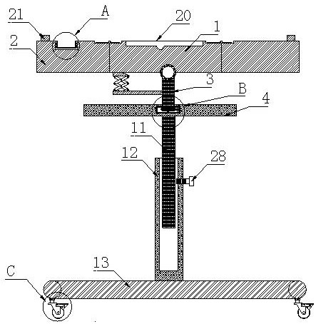 | 摘要: | 本实用新型公开了一种移动式多功能桌,具体涉及桌子领域,包括第一桌板,所述第一桌板两侧均设置有第二桌板,所述第一桌板与第二桌板铰接固定,所述第一桌板底部设置有旋转杆,所述转转杆与第一桌板活动连接,所述旋转杆一端活动设置有调节板,所述调节板内部设置有旋转机构,所述旋转机构包括保护箱,所述保护箱内部设置有旋转槽,所述旋转槽内部设置有固定杆,所述滚动杆外侧活动设置有小齿轮,所述小齿轮一侧设置有大齿轮。本实用新型通过移动机构,支撑杆与紧固丝杆,第一桌板与第二桌板铰接固定,旋转机构,可满足五个一体化的功能效果,大大提高了医护人员的工作效率。 | ||||