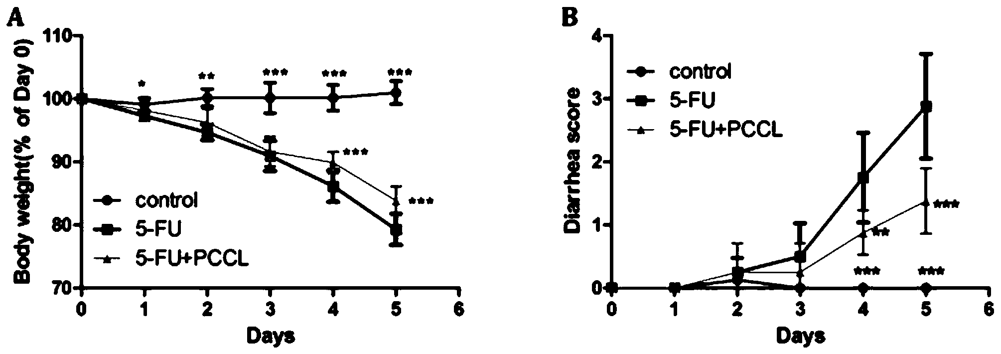| 摘要: | 本发明涉及菟丝子多糖在制备治疗5‑氟尿嘧啶所致肠炎的药物中的应用,属于医药技术领域。本发明的菟丝子多糖能改善5‑氟尿嘧啶所致的体重减轻、腹泻、绒毛高度降低、隐窝损伤,降低TNF‑α、IL‑1β、IL‑6炎症因子水平,降低细胞凋亡率,降低凋亡蛋白casapse‑3、Bax的表达水平,升高抗凋亡蛋白Bcl‑2的表达水平,对修复5‑氟尿嘧啶所致的肠黏膜损伤有显著疗效,能用于制备治疗5‑氟尿嘧啶所致肠炎的药物。 | ||||
