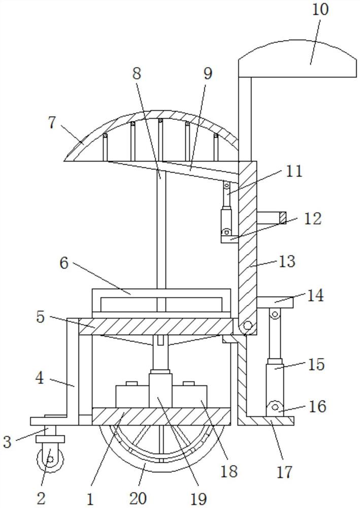 | 摘要: | 本实用新型公开了平车轮椅一体装置,包括固定座,所述固定座后侧的顶部固定连接有输液架,所述固定座的前后两侧均通过轴承活动连接有移动轮,所述固定座左侧的前后两侧均固定连接有固定杆,所述固定杆远离固定座的一端固定连接有支撑轮,所述固定座内壁底部的后侧固定连接有蓄电池,所述固定座内壁底部的中心处固定连接有第一电动伸缩杆,所述第一电动伸缩杆的顶部固定连接有座板。本实用具备多功能的优点,解决了现有的轮椅功能单一,不能转换为平车装置进行使用,医院中的轮椅和平车需要分类存放,增加了医用的存放面积,轮椅不便于升降和调节轮椅靠背的角度,影响病人的使用,当病人出行时,不便于遮阳挡雨的问题。 | ||||