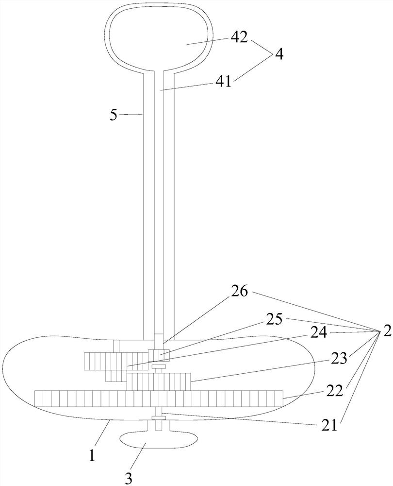 | 摘要: | 本实用新型公开了一种直肠按摩器,包括肛门外盖、发条驱动装置、旋转手柄、转动按摩装置和外套;发条驱动装置包括旋转轴、发条、大齿轮、齿轮组、小齿轮及连接件,发条的两端分别固定在肛门外盖、旋转轴上,大齿轮固定在旋转轴上且通过齿轮组联动小齿轮,小齿轮与连接件固定连接;旋转手柄位于肛门外盖后侧外部并与旋转轴固定连接;转动按摩装置包括转杆,转杆的前端为椭球状转动按摩端,转杆的后端与贯穿肛门外盖前侧的连接件固定连接;外套套在转杆和椭球状转动按摩端的外围,外套的后端与肛门外盖连接。本实用新型的直肠按摩器上好发条椭球状转动按摩端旋转即可在直肠内按摩直肠,刺激直肠壁,促进排便反射,辅助治疗便秘等排便障碍效果更佳。 | ||||