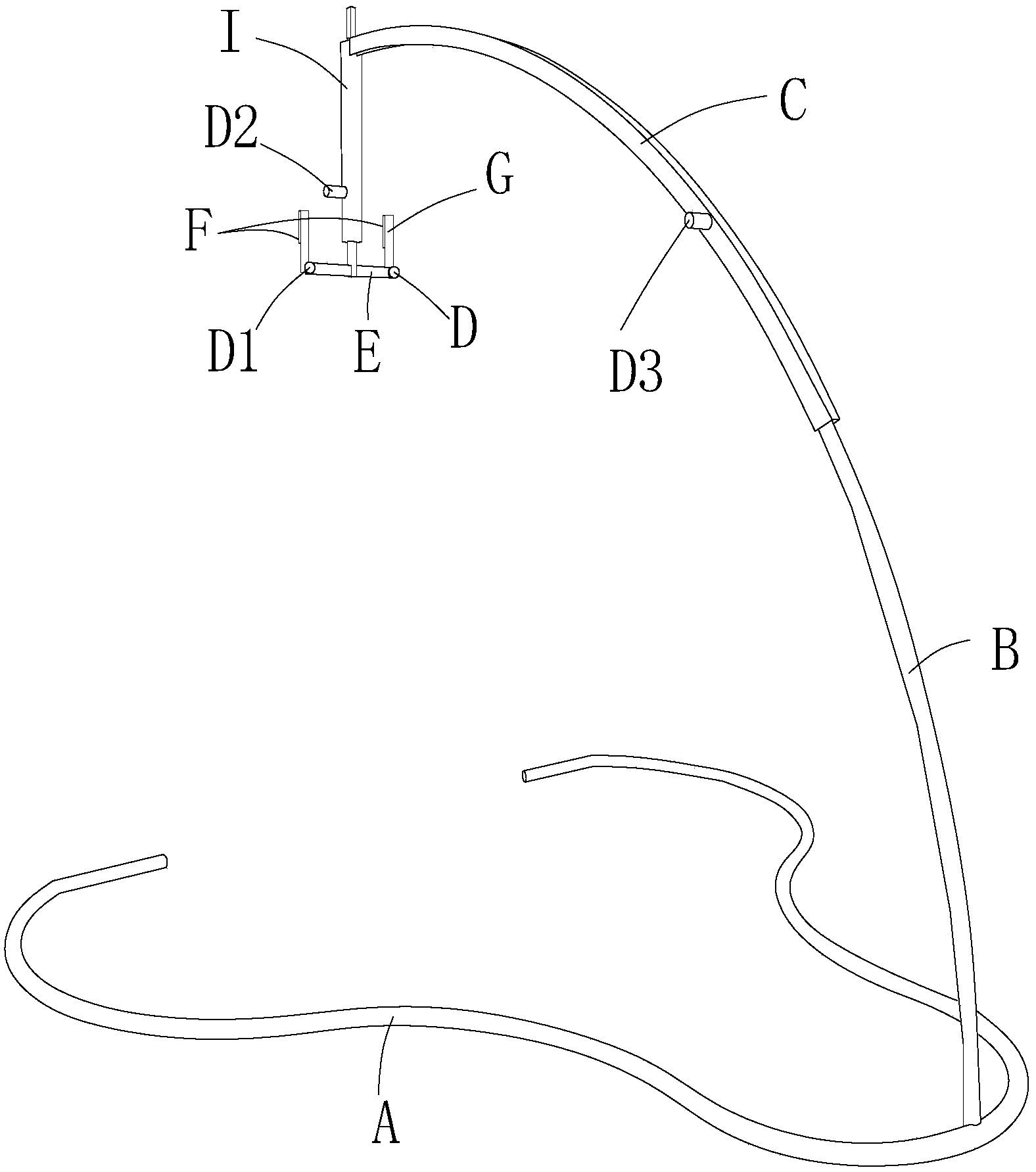| 摘要: | 本实用新型公开了侧脑室钻孔穿刺定位支架体,弧形的固定尺具有连接在平面支架中点的固定端以及活动端,还包括切面为开口向下的弧形的滑动杆,滑动杆套设在固定尺的活动端端部上,滑动杆远离固定尺的活动端的一端连接有竖直向下的中空套筒,中空套筒内插入有可上下移动的滑动杆,滑动杆伸出中空套筒的底端设有各向双侧延伸的横尺,横尺两侧分别设有用于引导穿刺的、可左右旋转的第一空心柱状体,其直径为脑室穿刺钻头的直径大小;在所述第一空心柱状体和中空套筒朝向同一方向的侧面的上部分别设有用于导向定位的第二空心柱状体和第三空心柱状体,其方向分别与第一空心柱状体和中空套筒平行;还包括分别穿过第二空心柱状体和第三空心柱状体的穿针,所述穿针的长度等于中空套筒顶端至平面支架两端连线中点的连线。 | ||||
