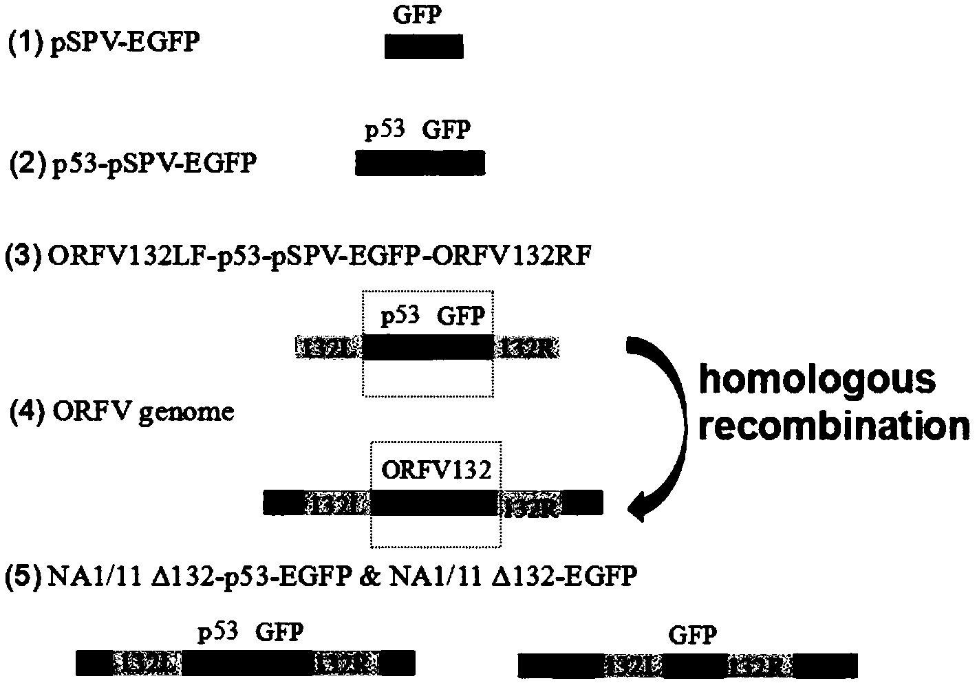 | 摘要: | 本发明公开了一种ORFV溶瘤病毒及其制备方法和应用,本发明的重组传染性脓疱溶瘤病毒的制备方法,包括以下步骤:(1)overlap PCR扩增权利要求7所述蛋白的基因p53;(2)连接到pSPV‑EGFP载体,插入p53基因得到重组质粒p53‑pSPV‑EGFP,随后再插入ORFV132基因的左右侧,构建穿梭质粒ORFV132LF‑p53‑pSPV‑EGFP‑ORFV132RF;(3)将其转化宿主菌TOP10,获得阳性重组菌,(4)转染OFTu细胞后荧光鉴定p53和EGFP的融合表达;制得纯化的重组传染性脓疱溶瘤病毒。(5)制得的重组传染性脓疱溶瘤病毒能够在OFTu和多种肿瘤细胞中复制增殖,并有效抑制多种肿瘤细胞生长。本发明在显微镜中即可观察,易于操作,方便快捷,大大缩短了筛选时间。 | ||||