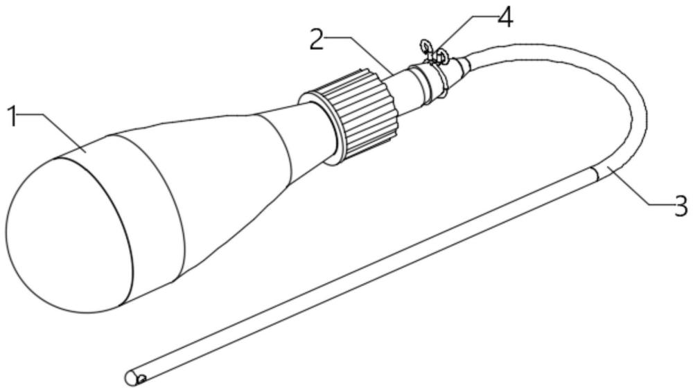 | 摘要: | 本实用新型涉及灌肠器技术领域,具体为一种防损伤的灌肠器,包括用于存储药液的气囊球主体,气囊球主体右端设有用于连接管道的连接管,连接管右端设有用于导入肛门输送药液的导尿软管,气囊球主体右端的出口处设有螺纹管,螺纹管右端设有与内部连通的引导管,连接管左端与螺纹管对应处设有套管;该防损伤的灌肠器,通过设置气囊球主体在螺纹管与引导管配合下通过带有套管的连接管与导尿软管插接配合,连接管在套管与螺纹管螺纹连接下,有助于对连接管快速拆卸更换,且气囊球主体内部存储药液通过引导管与连接管进行药液输送至导尿软管中,导尿软管便于快速更换,减少导尿软管内部堵塞时,影响到药液持续输送配合。 | ||||