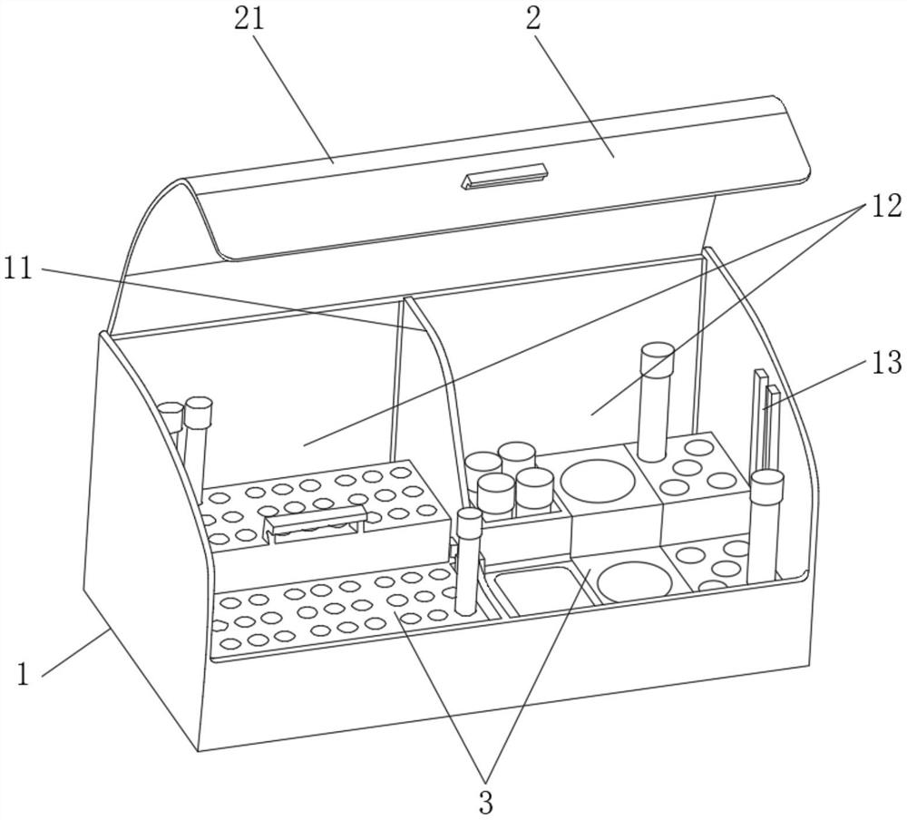 | 摘要: | 本实用新型公开了一种标本存放盒。一种标本存放盒,包括箱体和箱盖,所述箱体和箱盖铰接连接,其中,所述箱体内通过隔板分隔形成两个放置间,在每一所述放置间内均可拆卸装设有能够分类放置标本的标本盒模块组件,以及,在所述放置间的侧壁沿竖直方向设有能够固定所述标本盒模块组件的限位槽,在所述标本盒模块组件上设有能够与限位槽配合固定在一起固定块,在所述箱盖上设有观察窗。本实用新型一种标本存放盒,操作简单,方便医护人员拿取标本,存放标本的效果好并且能够规范化存放标本。 | ||||
