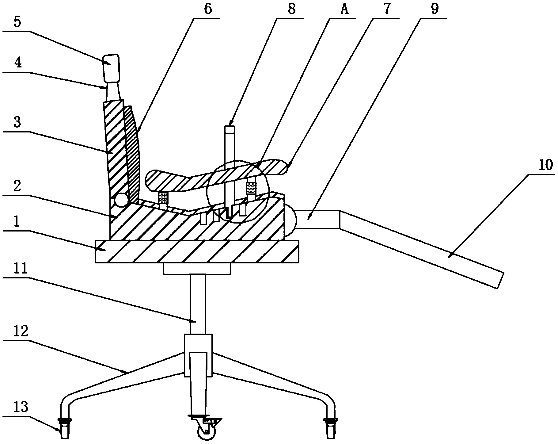 | 摘要: | 本实用新型公开了一种新型袋鼠式护理用躺椅,具体涉及医学护理设备技术领域,包括基座,所述基座的顶端固定设置有固定板,所述固定板的顶端活动连接有靠背,且固定板的一侧固定设置有延伸板,所述固定板的内部设置有限位阻挡机构,所述限位阻挡机构包括限位槽,所述限位槽的数量设置有四个。本实用新型设置了限位阻挡机构以及辅助滑动支撑机构,将限位块插入到限位槽中,可对宝宝的身体进行限位,方便妈妈对宝宝进行哺乳,通过万向轮移动基座的位置,便于使用躺椅,设置了按摩机构,第一凸起辊和第二凸起辊实现转动,可对妈妈的小腿部进行按摩,舒缓身心,缓解疲劳。 | ||||