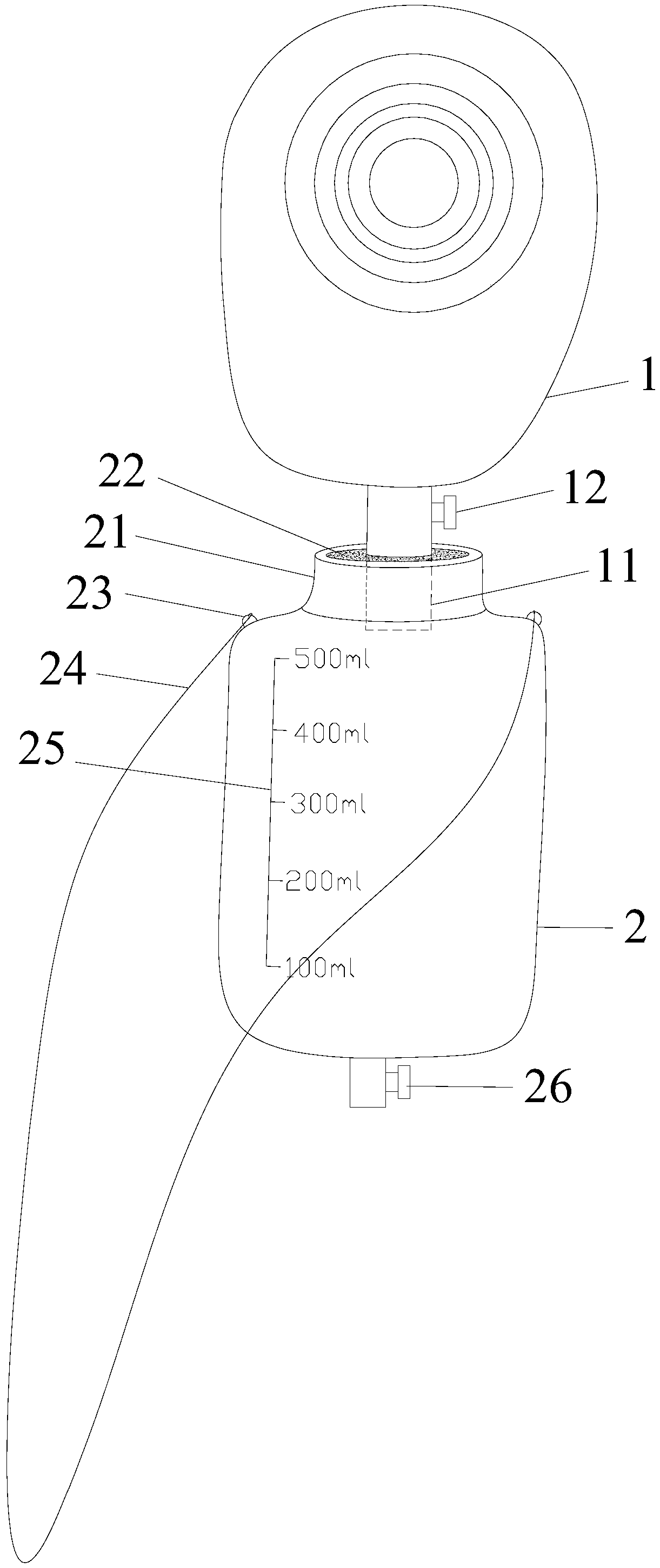 | 摘要: | 本实用新型公开了一种腹泻患者造口计量袋,包括造口袋,还包括储存袋,所述储存袋的上端敞口处固定有环形体,环形体内固定有中空弹性橡胶片,储存袋的下端装有留取标本开关,造口袋的下端连接有连接管,连接管的上部有开关,连接管的下部插入中空弹性橡胶片内且与中空弹性橡胶片的内边缘紧密吻合。本实用新型的腹泻患者造口计量袋可防止反复处理大便导致患者受凉。 | ||||