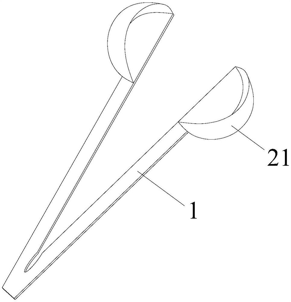 | 摘要: | 本实用新型公开了一种取药专用装置,包括两个构成V型结构的弹性杆体,两个弹性杆体的一端为相互连接的连接端,两个弹性杆体的另一端为相互远离且能够相互接近的自由端,两个弹性杆体的自由端的上表面分别固定有一四分之一半球形软胶壳,两个弹性杆体上的四分之一半球形软胶壳于两个自由端相互接近时对合构成二分之一半球形软胶勺。本实用新型的取药专用装置能够很好挤压出药膏,不易弄脏手,不易掉落,同时精准地将药膏留置在装置的软胶勺上。 | ||||