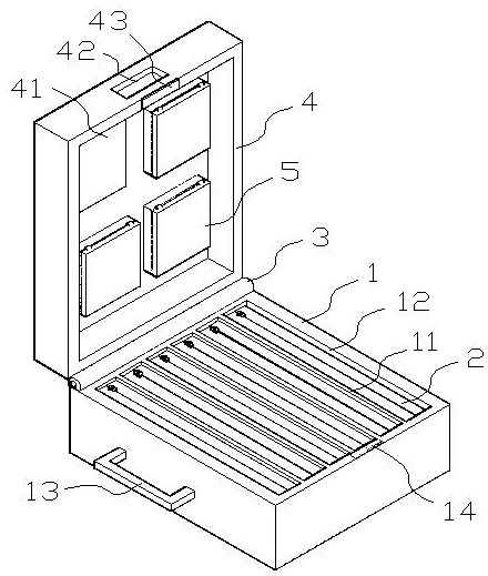 | 摘要: | 本实用新型涉及儿童插管领域,尤其涉及一种引导式儿童气管插管急救箱,该急救箱可以对多种气管插管和药物进行分类规整,且可对医护人员进行引导,有效解决背景技术中提出的问题。包括箱体,箱体中设有若干竖向的隔板,将箱体分隔为若干左右排列的储物格,储物格中分别储放有急救包;箱体外端部通过铰接轴连接上盖,所述上盖左上侧固定设有侧开口的第一盒体,所述第一盒体中插置有引导卡;上盖除第一盒体之外的空间可拆卸设有盒装儿童喉镜;箱体内端部上沿嵌有第一磁块,上盖上端部外沿嵌有与第一磁块吸引配合的第二磁块。它操作简单,使用方便,适用于多个年龄段的儿童。 | ||||