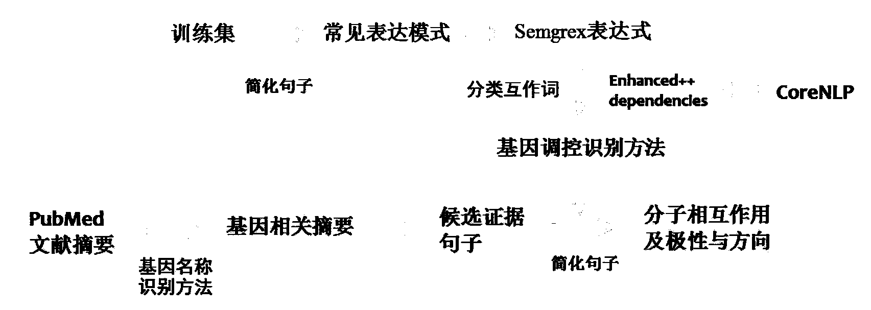| 摘要: | 本发明提供了一种从PubMed文献准确识别分子相互作用及其极性和方向性方法:利用PubMed文献挖掘的形式在医学文献数据库识别含有至少两个基因获得候选证据句子,收集训练数据,收集互作词并对其分类,简化训练语句提取描述基因调控的常见表达模式;将常见表达模式制定Semgrex表达式,依存树上抓取两两基因和互作词的三元关系,确定分子相互作用的方向,并根据上下文语义校正和明确分子相互作用及其极性,在训练集上反复检验和优化识别方法,最终将建立的基因调控识别方法应用于医学文献数据库的候选证据句子的识别,获得准确的分子相互作用及其极性和方向。本发明最大的优点是通过表达模式和互作词的限定提高识别的准确率。 | ||||