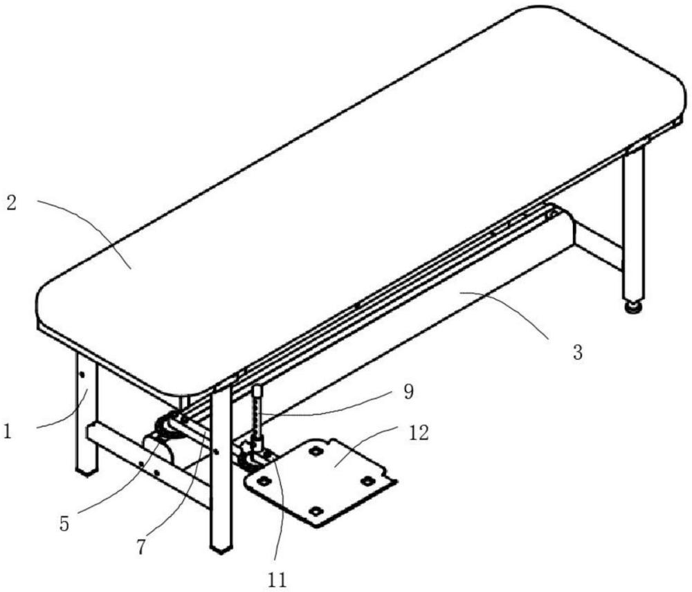 | 摘要: | 本实用新型提出了便捷式理疗床下托盘装置,包括床架、理疗床,所述床架的顶部固定连接有理疗床,所述床架的内侧固定连接有导轨,所述导轨与理疗床的走向平行,所述导轨的内侧活动连接有滑块。本实用新型的优点在于:拖动盘与导轨、滑块、第一支臂、第二支臂配合可部署在理疗床旁的任意位置,用来放置中频治疗仪、电针治疗仪等仪器,第一支臂的角度可通过锁定销与定位孔进行锁定,第二支臂的角度可通过锁定销与定位孔进行锁定,滑套的高度即拖动盘的高度可通过锁定销与导杆配合进行锁定,将仪器放置在拖动盘上方后,即使意外碰到拖动盘,拖动盘也牢固不动,防止仪器掉落,本装置为仪器的牢固放置装置,有效解决现有技术中存在的问题。 | ||||
