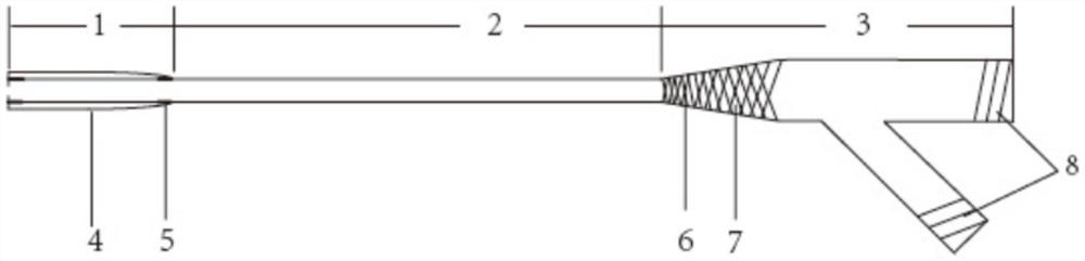 | 摘要: | 本实用新型涉及一种冠脉介入诊疗用的辅助穿刺球囊,它分为连续的头段、体段和尾段三部分;头段和体段是平直的,头段具有可扩张的球囊结构;尾段的前部为锥形操控段,表面具有网格状纹路;尾段的后部为Y形分叉结构,形成压力通道口和导丝通道口;相互独立的压力通道和导丝通道从尾段延伸贯穿头段、体段;压力通道和导丝通道是相互平行走向的,在尾段内分开导向各自的压力通道口和导丝通道口;压力通道口用于连接压力泵,导丝通道口用于连接Y阀。本实用新型设计精巧,使用方便,头段有平直球囊结构,能更好地与刀切样闭塞近端纤维帽紧密贴合,保证导丝从血管结构内进入闭塞段,提高了手术的效率和成功率,同时降低花费和围手术期并发症。 | ||||