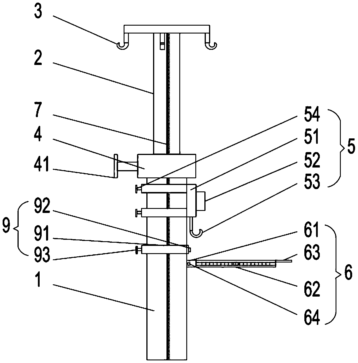 | 摘要: | 本实用新型提供了一种具有脑科引流管固定报警功能的可调输液杆,包括第一支撑杆,还包括一端插入第一支撑杆上端并且与第一支撑杆活动连接的第二支撑杆、可调节的设置于第一支撑杆上的检测报警装置和用于与第一支撑杆接触用于对引流管高度位置进行确定的位置调节检测装置,所述第一支撑杆与第二支撑杆连接端设置有用于固定连接的固定调节头,所述第二支撑杆上端设置有若干个用于输液袋固定的输液袋支撑结构,所述检测报警装置设置有用于对引流管流量进行检测和报警的引流报警装置,所述位置调节检测装置上设置有用于对引流管高度进行检测的水平测量装置。通过本实用新型能够有效提高引流管调节定位的准确性,确保患者安全。 | ||||