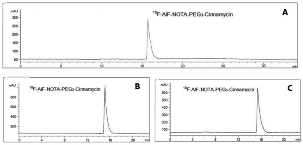 | 摘要: | 本发明涉及放射性标记肉桂霉素,其制备方法及其用途,具体为一类靶向磷脂酰乙醇胺(PE)的放射性(R)标记三聚乙二醇(PEG3)修饰肉桂霉素(Cinnamycin)多肽化合物(R‑PEG3‑Cinnamycin),其结构式如式1,其中,R=[X n+ ]‑1,4,7‑三氮杂环九烷基‑N’,N”‑二乙酸基‑N‑乙酰基([X n+ ]NOTA‑)或其它[X n+ ]螯合剂,如[X n+ ]‑1,4,7,10‑四氮杂环十二烷‑N’,N”N”’‑三乙酸基‑N‑乙酰基([X n+ ]DOTA‑),标记放射性金属离子X n+ = 68 Ga 3+ ,[Al 18 F] 2+ ,[ 64 Cu]或其它放射性金属离子。 | ||||