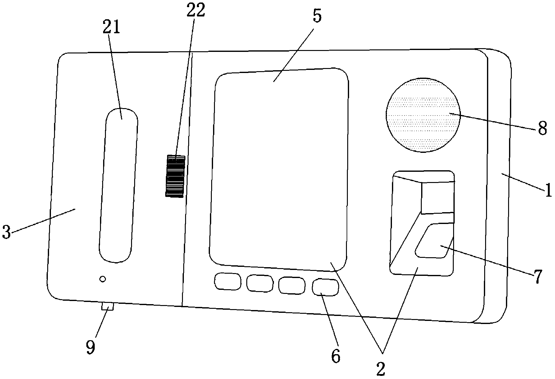| 摘要: | 本实用新型公开了一种急会诊签到设备,用于医院急诊科抢救室记录医生就诊时间,包括有壳体、信息采集组件和感应消毒组件,所述信息采集组件和感应消毒组件均设于壳体内,所述感应消毒组件设于信息采集组件侧边,通过信息采集组件采集医生信息和就诊时间,感应消毒组件进行接触皮肤消毒,所述信息采集组件包括有控制电路板和分别与其连接的显示屏、功能按键、指纹采集器和扬声器,所述显示屏设于壳体的左上方,所述功能按键设于壳体下方,所述指纹采集器设于显示屏右侧,所述扬声器设于指纹采集器下方,通过控制电路板控制指纹采集器采集医生信息,显示屏显示医生达到时间,扬声器播放医生已到达的语音信息,功能按键查看或调整显示屏显示内容。 | ||||