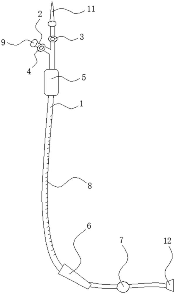| 摘要: | 本实用新型涉及医疗器械技术领域,公开了一种可测量中心静脉压的输液管道,其包括第一管、第二管、第一输液夹和第二输液夹,第一管和第二管均为空心管且第一管与第二管连通,第一管的第一端用于伸入液体中,第一管的第二端用于连接静脉管道,第一输液夹靠近第一管的第一端设置,第二输液夹设于第二管上。本实用新型的有益效果为:整体输液管道在测量完静脉压后还可以继续输液使用,节约了成本,且减少了各部分接口连接和断开的次数,避免感染,同时减少测量中心静脉压所使用的物品数量,便于操作,节省时间。 | ||||