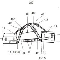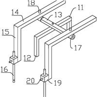 本实用新型公开了肋骨骨折的复位装置,其包括固定架和支撑杆,固定架包括横杆和两个第一竖杆,两个第一竖杆分别位于横杆的两端,支撑杆的中部安装在横杆的中部,支撑杆垂直于横杆,支撑杆的两端分别布置有摆动臂,摆动臂的一端布置有直杆,直杆的下端布置有骨针,支撑杆的两端分别布置有用于安装摆动臂的套筒,套筒的外侧成型有用于安装摆动臂的安装轴。临床使用时摆动臂具有上下和左右两个维度的调整方式,采用微创手术的方式将骨针与断裂的肋骨安装,再调整摆动臂使肋骨对...