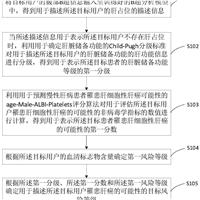 本申请提供了一种风险等级确定方法、装置、计算机设备及存储介质,其中,将用户的腹部B超信息输入至B超分析模型中,得到用户的肝占位的信息;利用Child‑Pugh分级标准对用户的肝脏储备功能的肝功能信息进行分级,得到用于表示目标用户的肝脏储备功能等级的第一分级;利用age‑Male‑ALBI‑Platelets评分算法得到用于表示目标用户罹患肝细胞性肝癌的可能性的第一分数;根据目标用户的血清标志物含量确定第一风险等级;根据第一分级、第一分数...