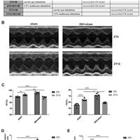 本发明公开了PER2在ISO的心肌保护作用昼夜差异性的研究方法,属于生物医药技术领域,该研究方法包括以下步骤,S1:将活体实验小鼠随机分组,分别建立实验小鼠假损伤或者心肌缺血再灌注损伤I/R模型,建模之前使用异氟醚或者载气处理;S2:体外培养H9c2细胞,保证昼夜节律同步化,然后建立体外细胞模拟缺血再灌注损伤模型;S3:对活体动物实验小鼠和体外培养细胞进行相应的功能测定。本发明证明了通过以时间依赖性方式激活PER2,ISO在MI/R诱导...