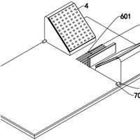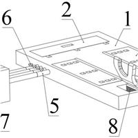 本实用新型涉及锐器分离技术领域,具体为一种脚踏式锐器分离装置,包括托盘,托盘中间开设有滑槽,滑槽中间设有切刀组件,托盘两侧面上均设有卡接组件,托盘下表面靠近前端处设有支撑组件,滑槽中靠近后端处设有定切刀,切刀组件包括固定板与固定板后端面上连接的动切刀,固定板两端均设有卡块,牵引绳上套设有弹簧;该脚踏式锐器分离装置,通过设置带有动切刀的固定板与托盘插接配合,卡块与卡槽滑动配合,动切刀与定切刀配合,有助于对锐器进行切断分离,固定板上的卡块配...