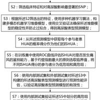 本发明提供了一种使用机器学习算法建立高尿酸血症预测模型的方法,属于健康评估技术领域,本发明实施例以基于大量人群的UKBB队列为训练,以内部测试集和南方医院健康体检者数据集为外部测试集,建立并验证了基于遗传和临床数据训练的可靠实用的堆叠式多模态机器学习模型,用于及时识别HUA表型,早期预测痛风和代谢相关结局风险。该模型的性能优良,超过了每个单个机器学习模型,显示出令人满意的效能。ISHUA标志物能够在早期阶段量化痛风风险和代谢相关结果,可...