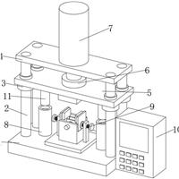 本实用新型公开了一种新型3D打印支架的力学性能测试装置,包括底座,所述底座上端左部与上端右部均固定连接有支撑柱,且四个支撑柱的上部外表面均活动穿插连接有活动柱,四个所述活动柱的外表面共同固定穿插连接有活动板,所述支撑柱上端共同固定连接有固定板,所述固定板上端中部固定连接有气缸,所述气缸的输出端贯穿固定板下端中部并固定连接有垫板,所述垫板下端与活动板固定连接在一起,所述底座上端左部与上端右部均固定连接有缓冲机构,所述底座上端中部固定连接有...
