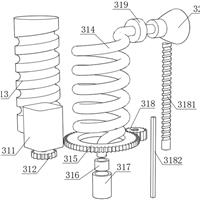 本实用新型公开了一种具有降噪功能的儿童雾化器,属于儿童雾化器技术领域,为了解决儿童雾化器噪音过大,且现有的雾化器不便于将软管进行收纳的问题。一种具有降噪功能的儿童雾化器,包括壳体以及设置在壳体内的降噪机构和收纳机构,壳体的内部设置有雾化器主体,收纳机构包括设置在雾化器主体上的转动组件,转动组件上设置有导通组件,通过启动电机带动第一直齿轮转动,带动第二直齿轮上的收纳辊转动,且由于软管的一端通过轴承与输送管相连接,带动软管转动缠绕收纳,同时...