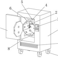 本实用新型公开了一种新型3D打印支架的热学性能测试装置,包括测试装置本体,所述测试装置本体前端下部开有散热孔,所述测试装置本体下端四角均固定连接有万向轮,所述测试装置本体前端左部开有槽口,所述测试装置本体前端左部活动连接有门板,所述测试装置本体前端右部固定连接有控制板,所述槽口内壁固定连接有导热机构,所述槽口上槽壁固定连接有电机,所述电机输出端固定连接有转动杆,所述转动杆下端固定连接有角度调节机构,所述角度调节机构位于导热机构内。本实用...