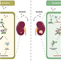 本申请提出一种RIPK1O‑GlcNAc糖基化抑制剂在制备增强舒尼替尼肾细胞癌敏感性药物中的应用,本申请发现RIPK1O‑GlcNAc糖基化特别是第331位、440位和669位丝氨酸的O‑GlcNAc糖基化降低了肾细胞癌对舒尼替尼的敏感性。因此通过抑制RIPK1O‑GlcNAc糖基化或者敲低O‑GlcNAc转移酶的表达,增加肾细胞癌对舒尼替尼的敏感性。因此RIPK1的O‑GlcNAc糖基化水平能够作为生物标记物,用于预测肾细胞癌对于舒尼...